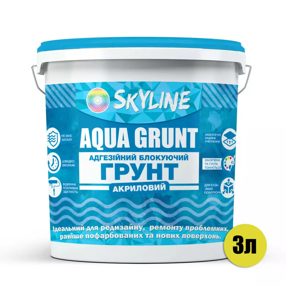 Аква Грунт Акриловый Адгезионный Блокирующий Skyline Aqua Grunt 3 л