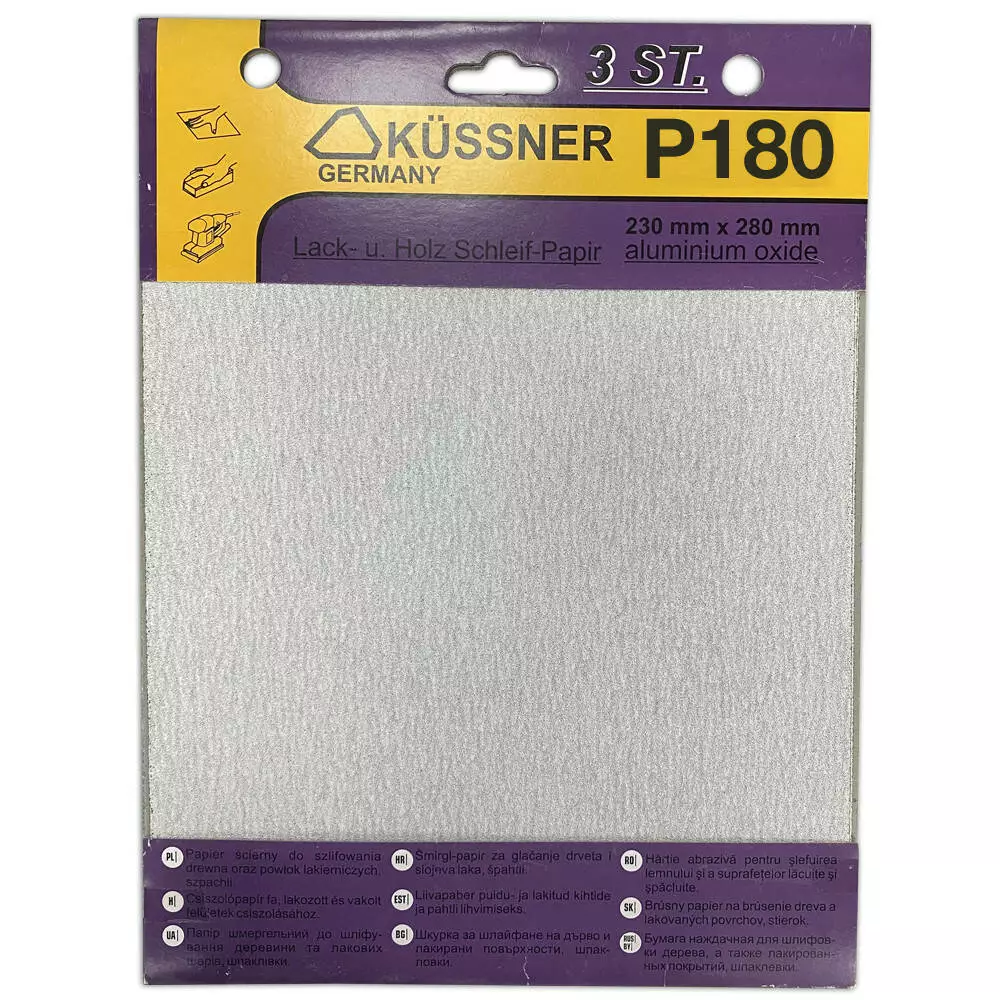 Бумага наждачная Kussner PS33 для красок, лаков и шпаклевок P180, 230x280 мм, уп. 3 шт.