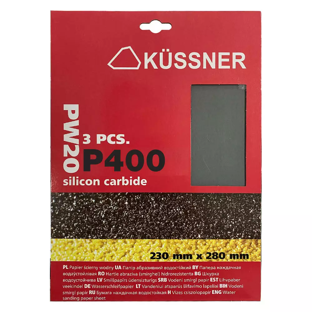 Бумага наждачная водостойкая Kussner PW20 карбид кремниевая P400, 230x280 мм, уп. 3 шт.