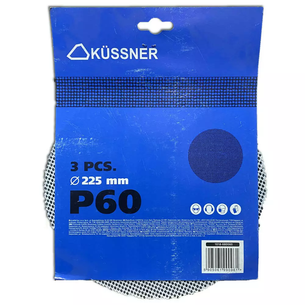 Диск абразивная сетка жесткая на липучке Kussner Hard «P60», диаметр 225 мм, уп. 3 шт.