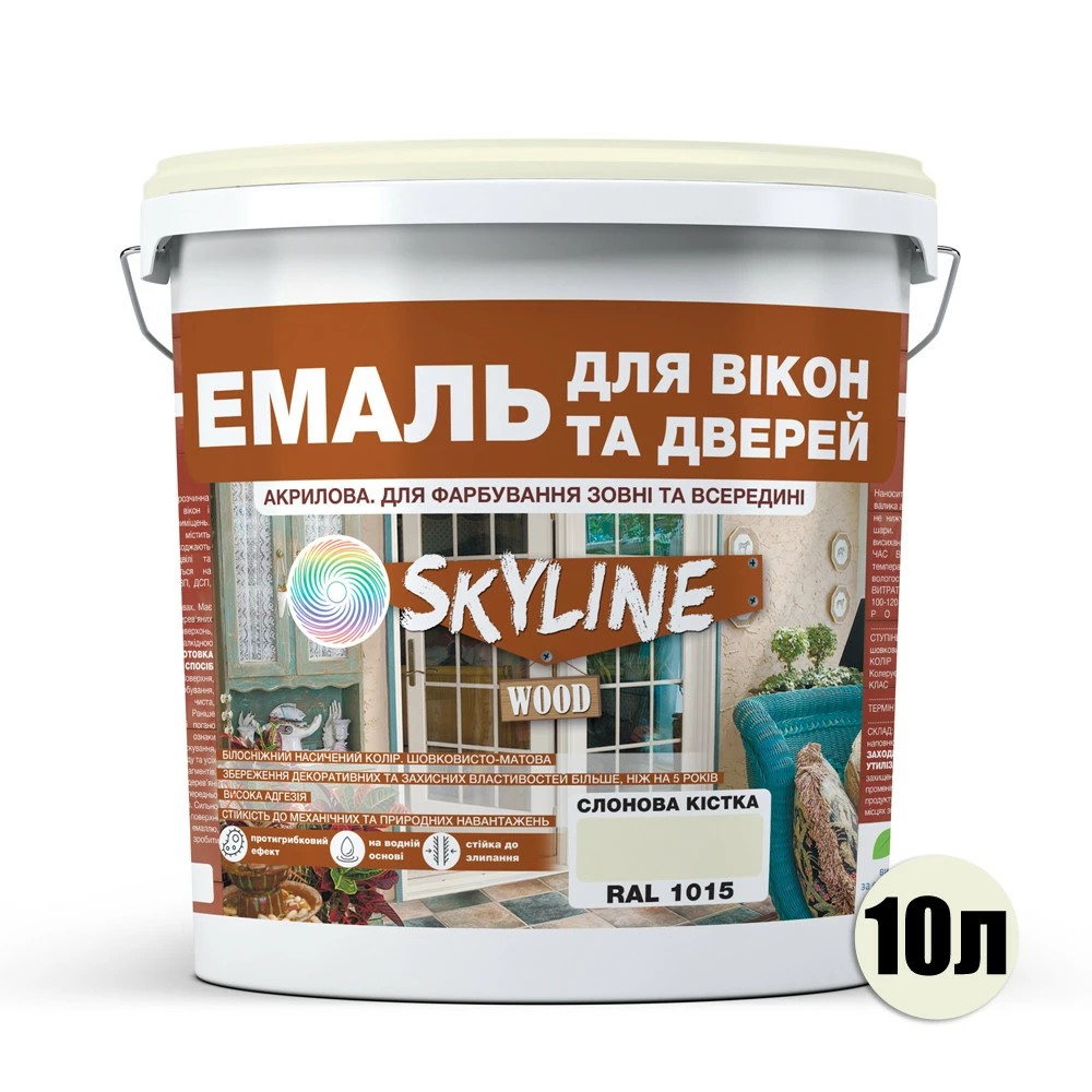 Эмаль акриловая Для Окон и Дверей SkyLine Wood Слоновая кость RAL 1015 10 л