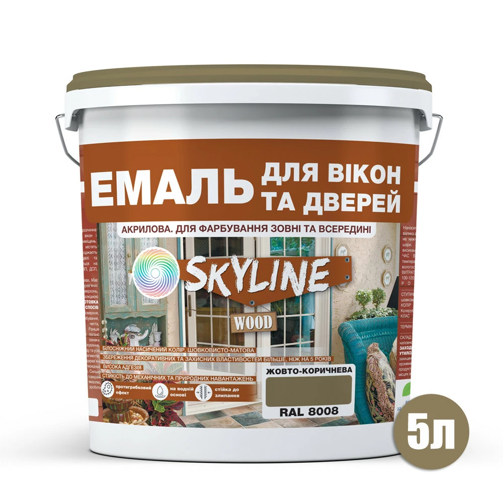 Эмаль акриловая Для Окон и Дверей SkyLine Wood Желто-коричневая RAL 8008 5 л