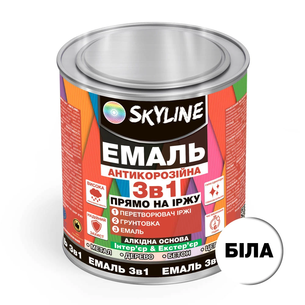Эмаль алкидная 3 в 1 по ржавчине антикоррозионная «Skyline» Белый 0.9 кг