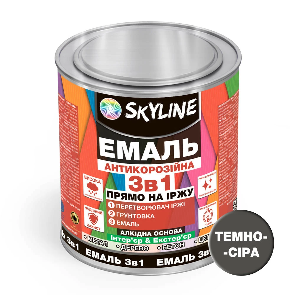 Эмаль алкидная 3 в 1 по ржавчине антикоррозионная «Skyline» Темно-серый 2.5 кг