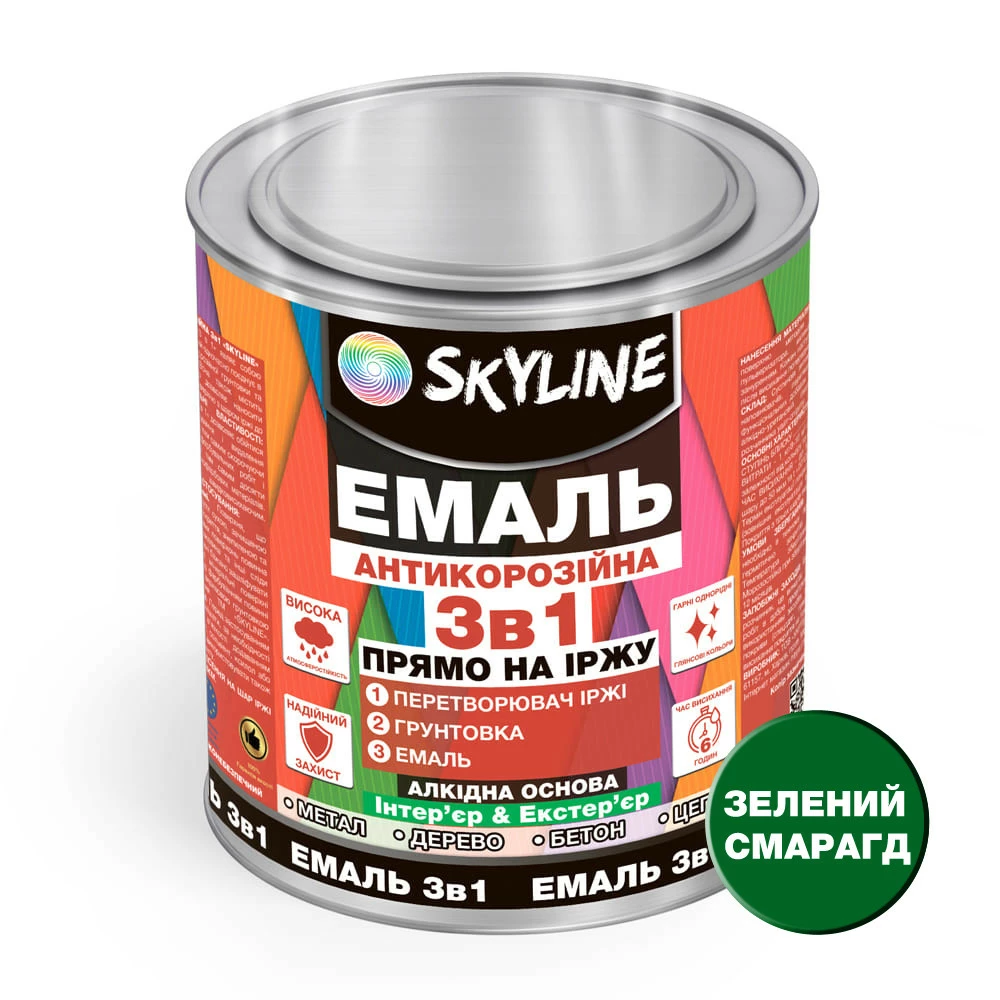 Эмаль алкидная 3 в 1 по ржавчине антикоррозионная «Skyline» Зеленый изумруд 0.9 кг