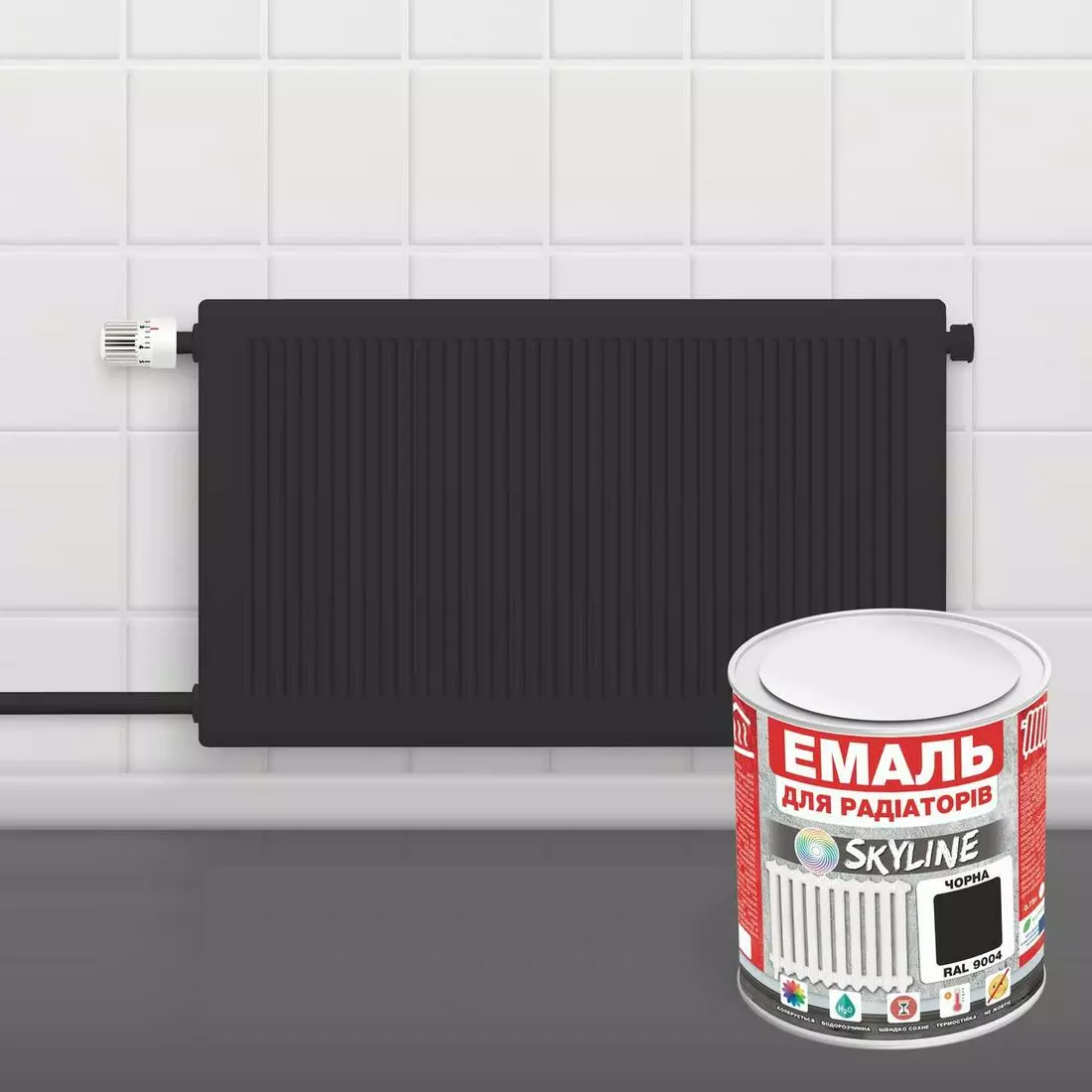 Высококачественная глянцевая белоснежная акриловая эмаль на водной основе «Эмаль Для Радиаторов SkyLine» (Скайлайн). Термостойкая – выдерживает температуры до +120°С. Не имеет запаха. Быстро сохнет. Не желтеет. Предназначена для декоративно-защитного окрашивания радиаторов отопления и труб водоснабжения, а также загрунтованного металла. Может быть нанесена на старые алкидные покрытия, которые крепко держатся. Используется внутри помещений. Создает стойкое к механическим нагрузкам и неабразивным моющим средствам покрытие. Атмосферостойкая. Содержит в своем составе ингибитор коррозии, который позволяет нанести эмаль на участки негрунтованной металлической поверхности во время проведения работ по реставрации поверхности. Крепкая, эластичная, с высокой адгезией и укрываемостью.