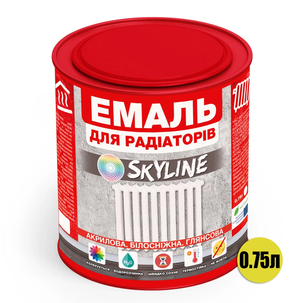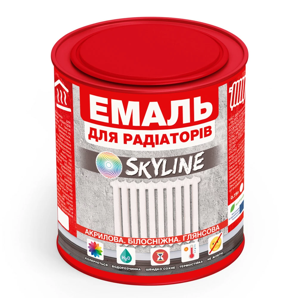 Высококачественная глянцевая белоснежная акриловая эмаль на водной основе «Эмаль Для Радиаторов SkyLine» (Скайлайн). Термостойкая – выдерживает температуры до +120°С. Не имеет запаха. Быстро сохнет. Не желтеет. Предназначена для декоративно-защитного окрашивания радиаторов отопления и труб водоснабжения, а также загрунтованного металла. Может быть нанесена на старые алкидные покрытия, которые крепко держатся. Используется внутри помещений. Создает стойкое к механическим нагрузкам и неабразивным моющим средствам покрытие. Атмосферостойкая. Содержит в своем составе ингибитор коррозии, который позволяет нанести эмаль на участки негрунтованной металлической поверхности во время проведения работ по реставрации поверхности. Крепкая, эластичная, с высокой адгезией и укрываемостью.