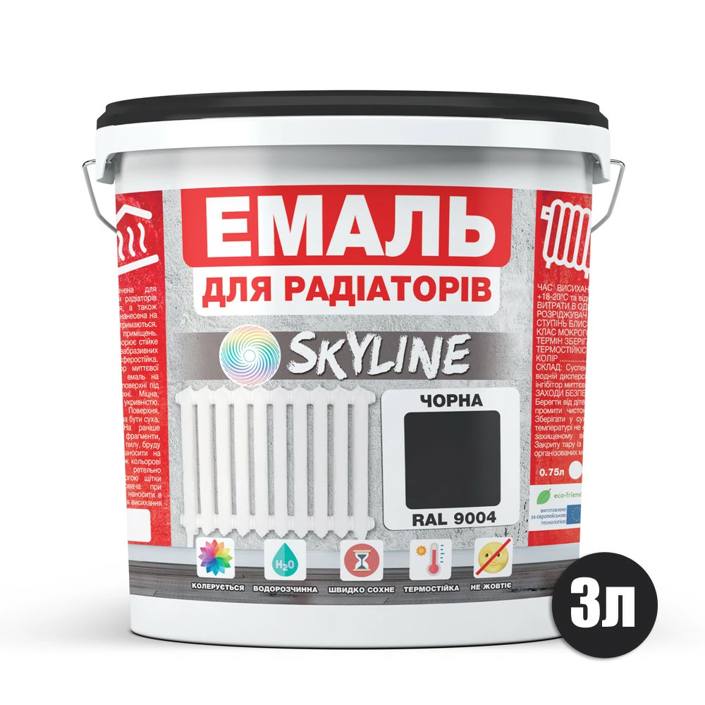 Эмаль Для Радиаторов акриловая термостойкая глянцевая SkyLine 3 л Черная RAL 9004