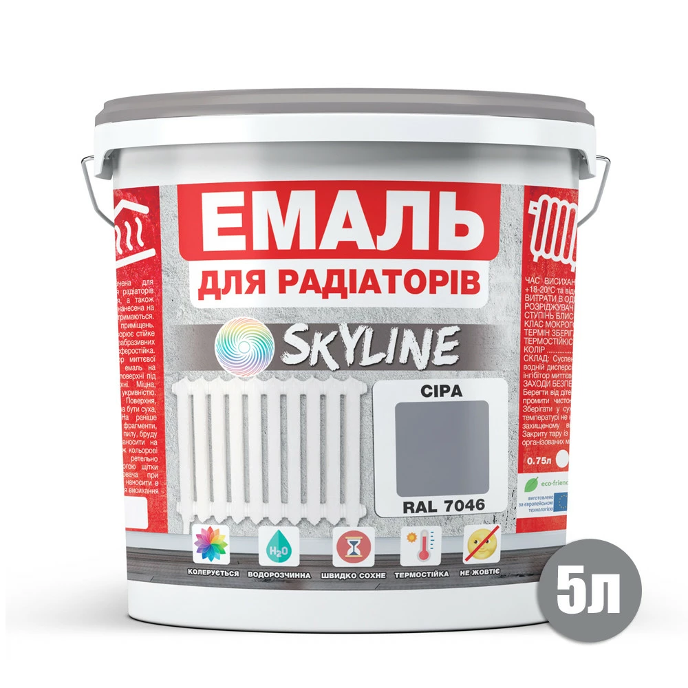 Эмаль Для Радиаторов акриловая термостойкая глянцевая SkyLine 5 л Серая RAL 7046