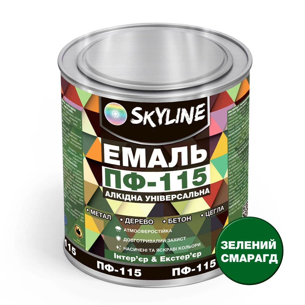 Эмаль ПФ-115 алкидная универсальная атмосферостойкая «Skyline» Зеленый изумруд 0.9 кг