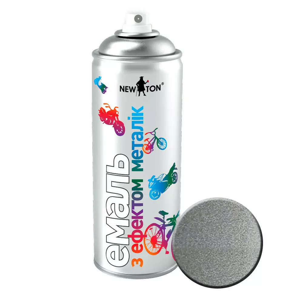 Эмаль универсальная с эффектом "металлик" NewTon — акриловая эмаль с высоким содержанием металлизированного пигмента. Придает поверхности оригинальный эффект «металлик» и подчеркивает глубину цвета. Образует прочное глянцевое покрытие, устойчивое к механическим и атмосферным воздействиям. Используется для быстрого и качественного окрашивания велосипедов, скутеров, мотоциклов, автомобилей, бытовой техники, предметов интерьера. Пригодна для декорирования и дизайнерского оформления.