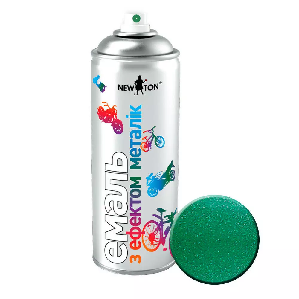 Эмаль универсальная с эффектом "металлик" NewTon — акриловая эмаль с высоким содержанием металлизированного пигмента. Придает поверхности оригинальный эффект «металлик» и подчеркивает глубину цвета. Образует прочное глянцевое покрытие, устойчивое к механическим и атмосферным воздействиям. Используется для быстрого и качественного окрашивания велосипедов, скутеров, мотоциклов, автомобилей, бытовой техники, предметов интерьера. Пригодна для декорирования и дизайнерского оформления.