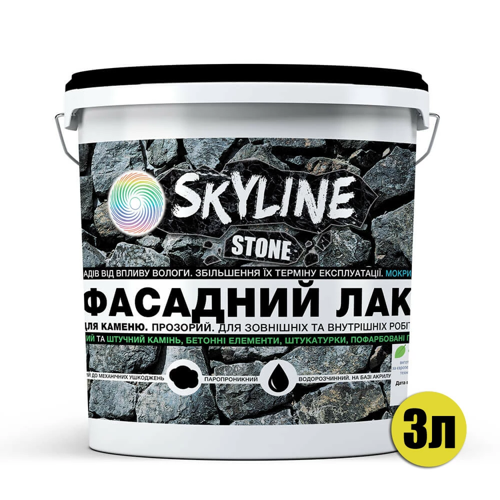 Фасадный лак акриловый для камня мокрый эффект Stone SkyLine Глянцевый 3л