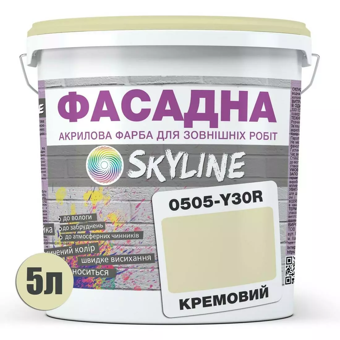 Краска Акрил-латексная Фасадная Skyline 0505-Y30R Кремовый 5л