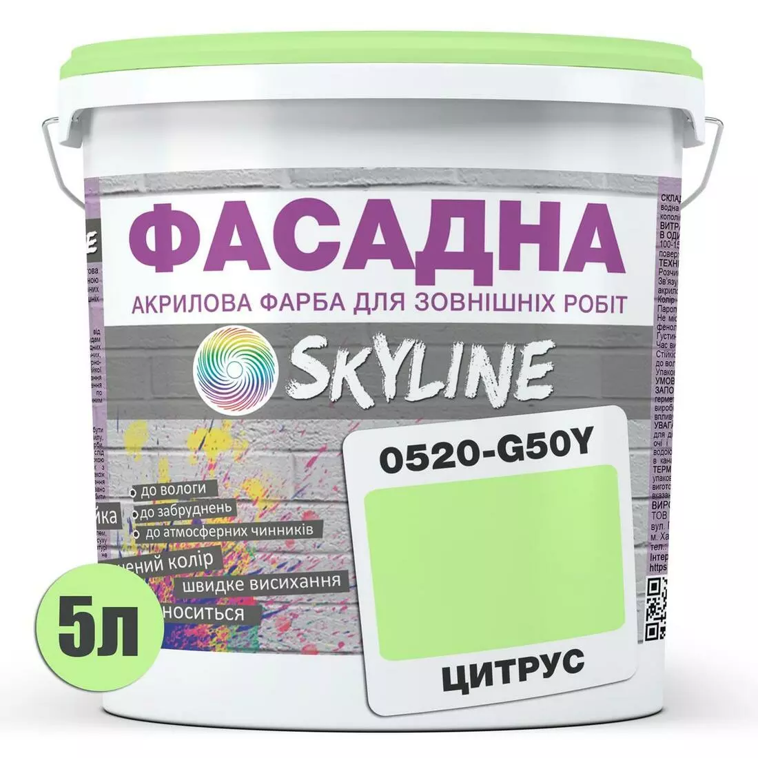 Краска Акрил-латексная Фасадная Skyline 0520-G50Y Цитрус 5л