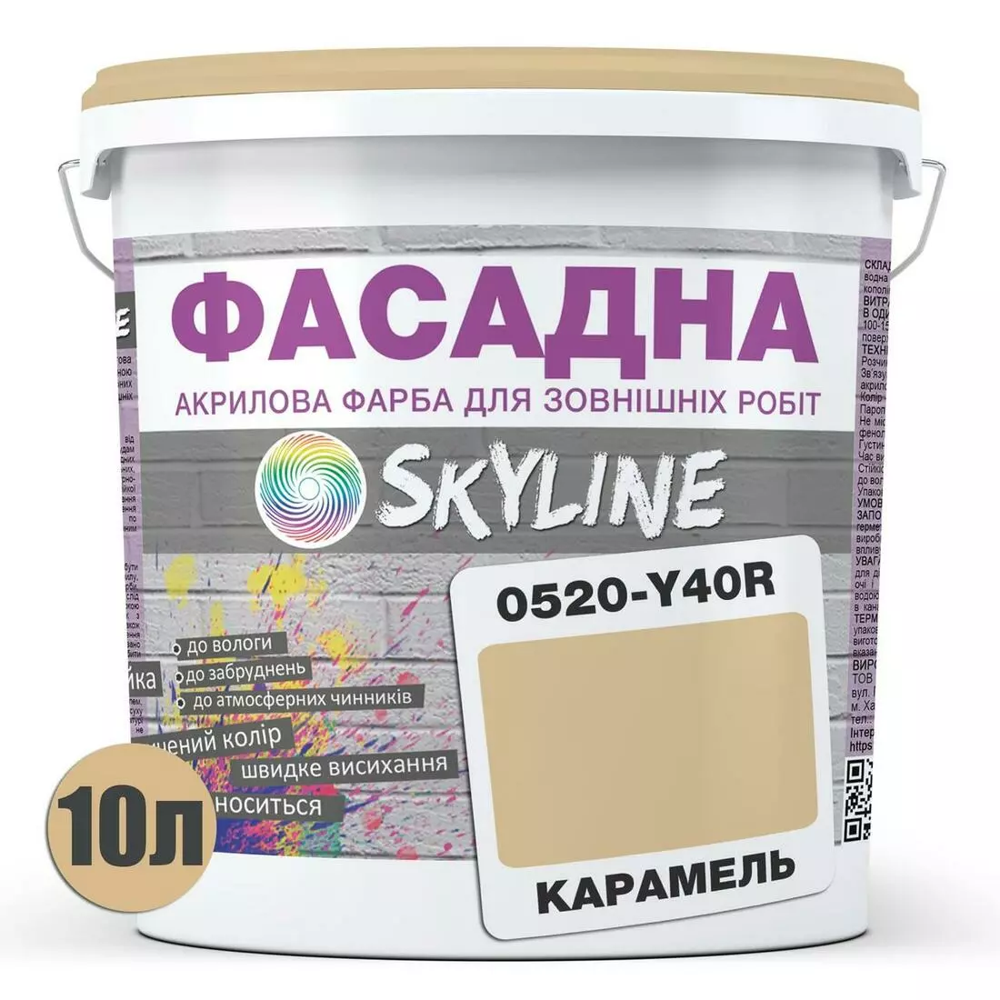 Краска Акрил-латексная Фасадная Skyline 0520-Y40R Карамель 10л