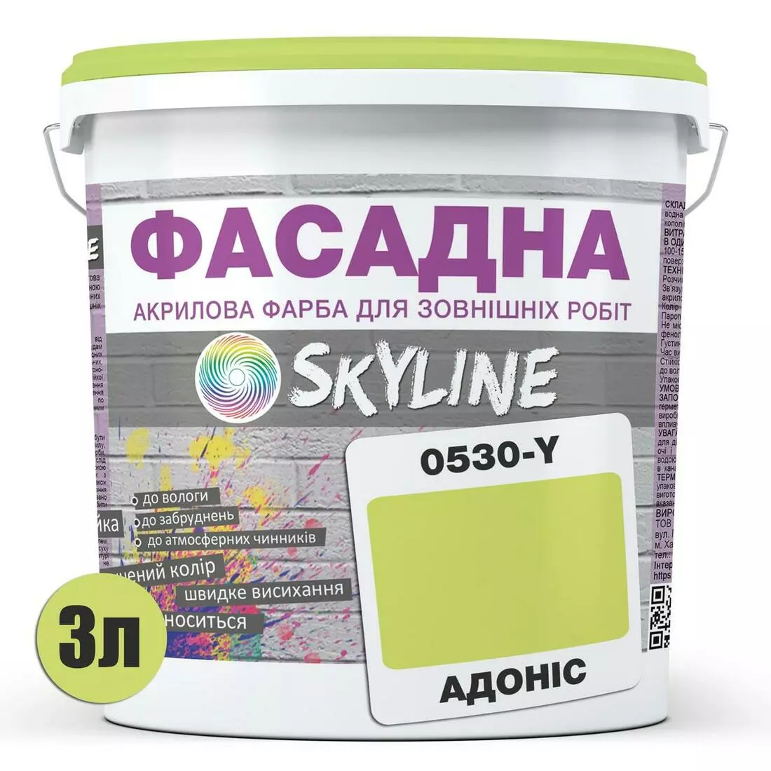 Краска Акрил-латексная Фасадная Skyline 0530-Y Адонис 3л