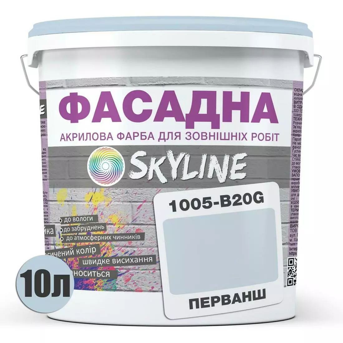 Краска Акрил-латексная Фасадная Skyline 1005-B20G Перванш 10л