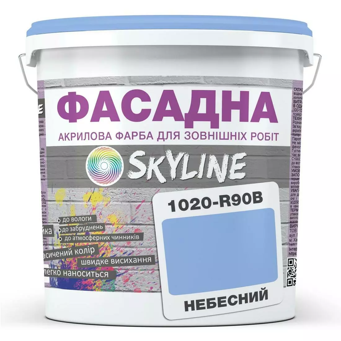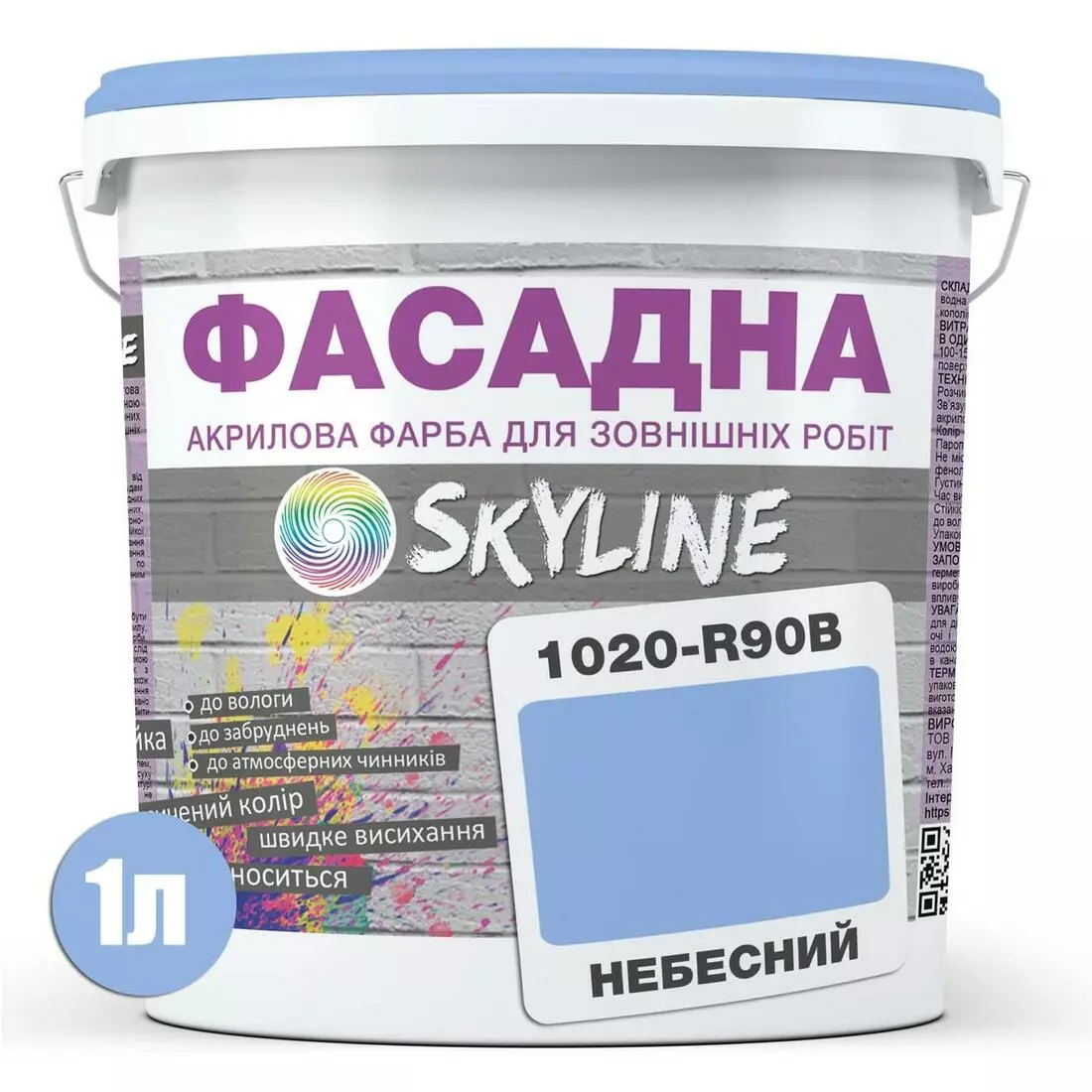 Краска Акрил-латексная Фасадная Skyline 1020-R90B Небесный 1л