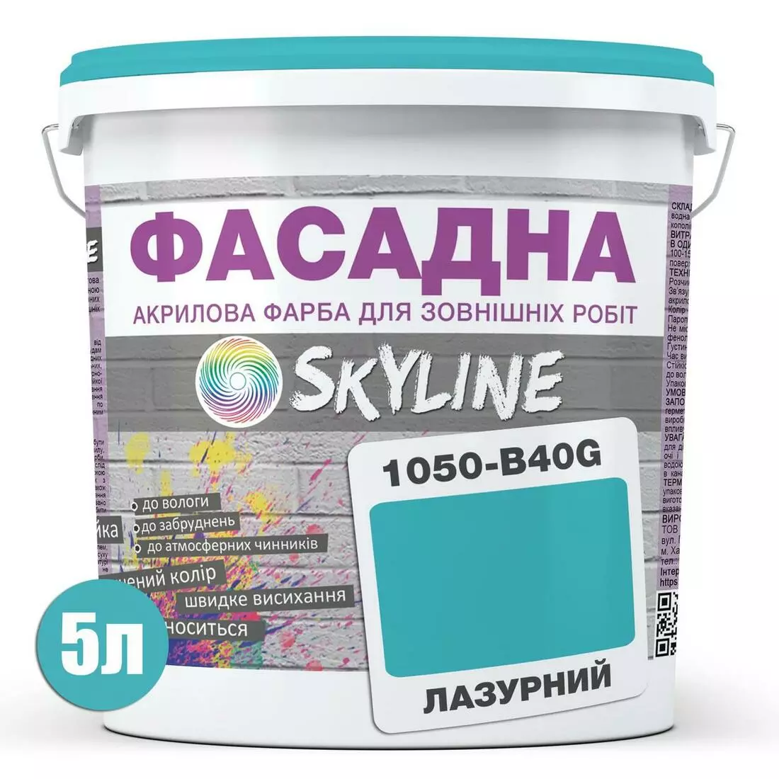 Краска Акрил-латексная Фасадная Skyline 1050-B40G Лазурный 5л