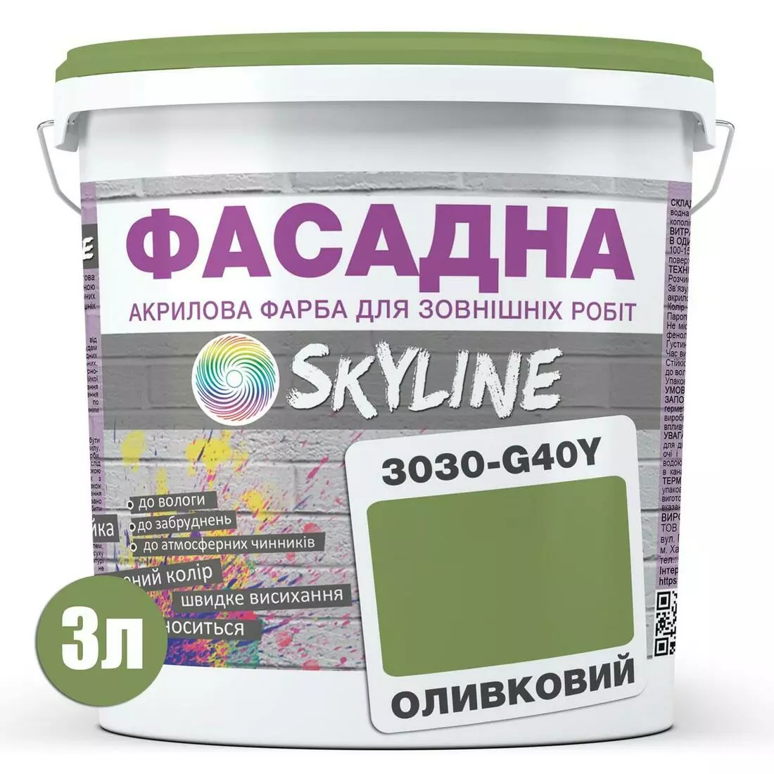 Краска Акрил-латексная Фасадная Skyline 3030-G40Y Оливковый 3л