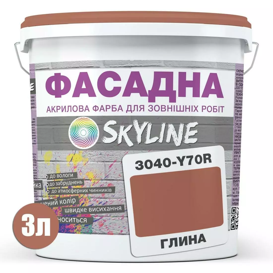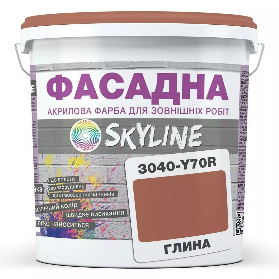 Краска Акрил-латексная Фасадная Skyline 3040-Y70R Глина 3л