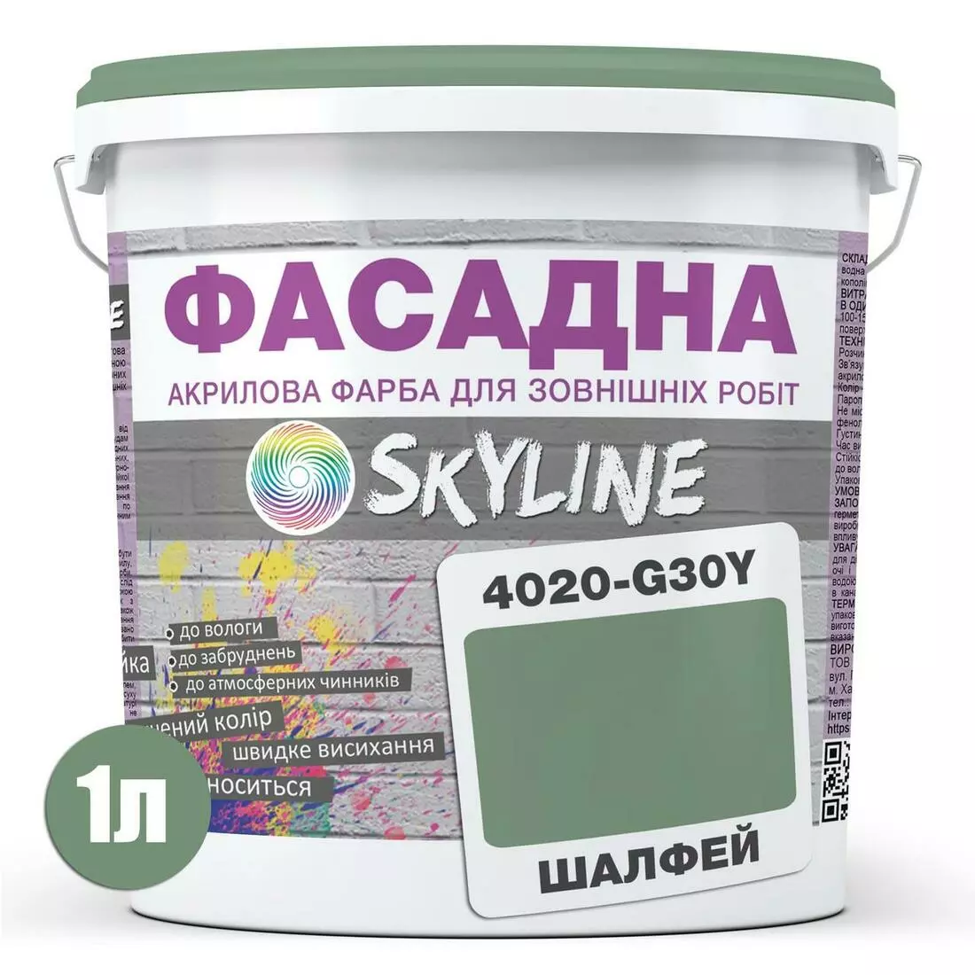 Краска Акрил-латексная Фасадная Skyline 4020-G30Y Шалфей 1л