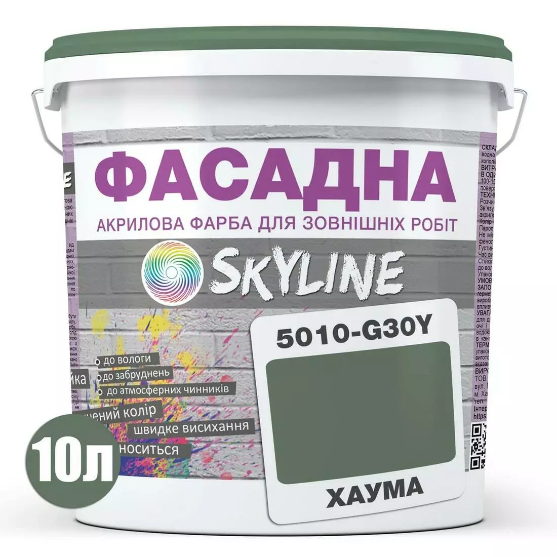 Краска Акрил-латексная Фасадная Skyline 5010-G30Y Хаума 10л
