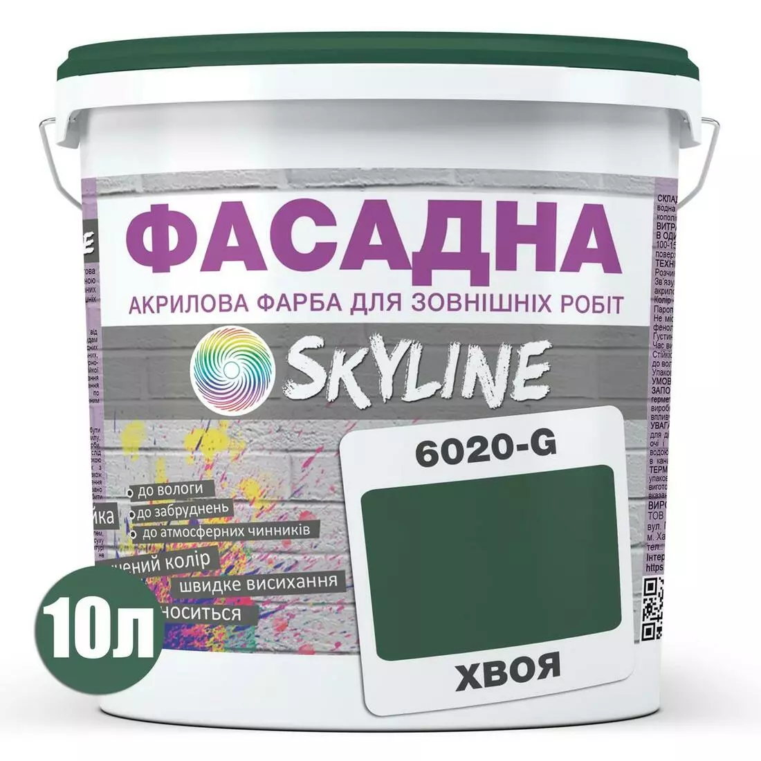 Краска Акрил-латексная Фасадная Skyline 6020-G (C) Хвоя 10л