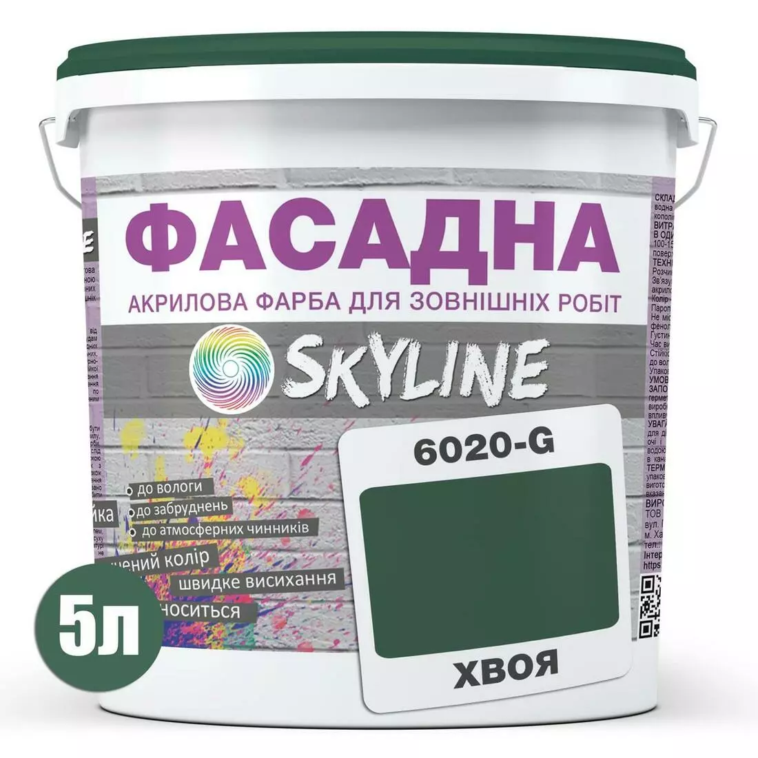Краска Акрил-латексная Фасадная Skyline 6020-G (C) Хвоя 5л