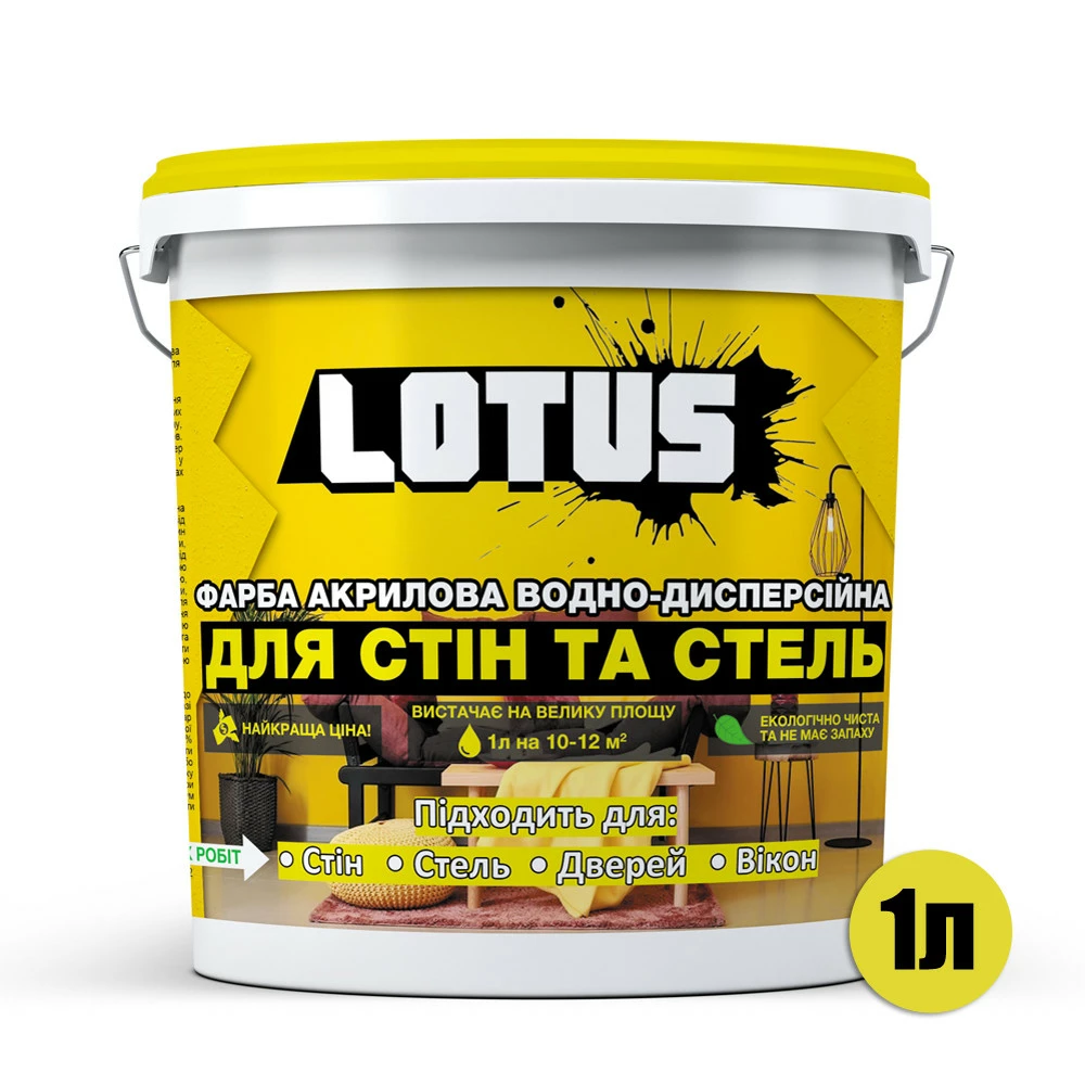 Краска акриловая водно-дисперсионная Для стен и потолков LOTUS 1 л