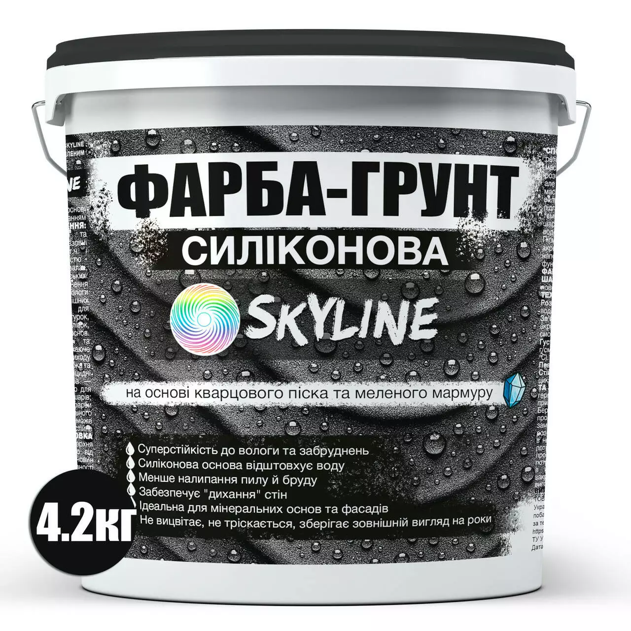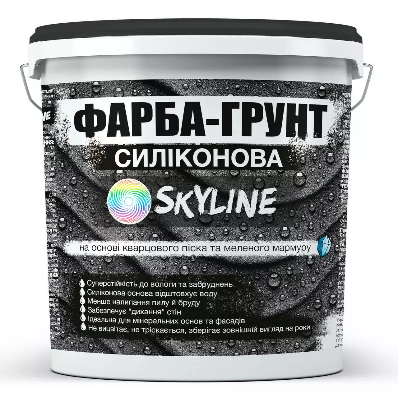 Силиконовая влагостойкая грунт-краска Skyline — это высококачественная экологичная водно-дисперсионная краска-грунт на основе силиконовых смол с добавлением кварцевого песка и мраморной крошки, произведённая по современной европейской технологии. Предназначена для подготовки стен и потолков перед нанесением финишного покрытия во влажных помещениях и снаружи.