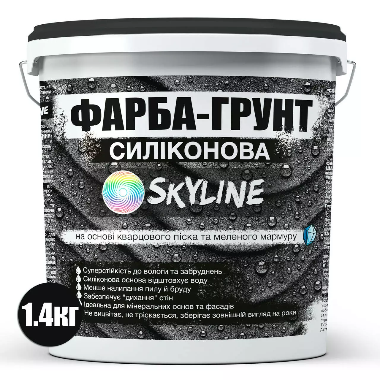 Краска - Грунт Skyline Силиконовая влагостойкая на основе кварцевого песка и мраморной крошки 1,4 кг