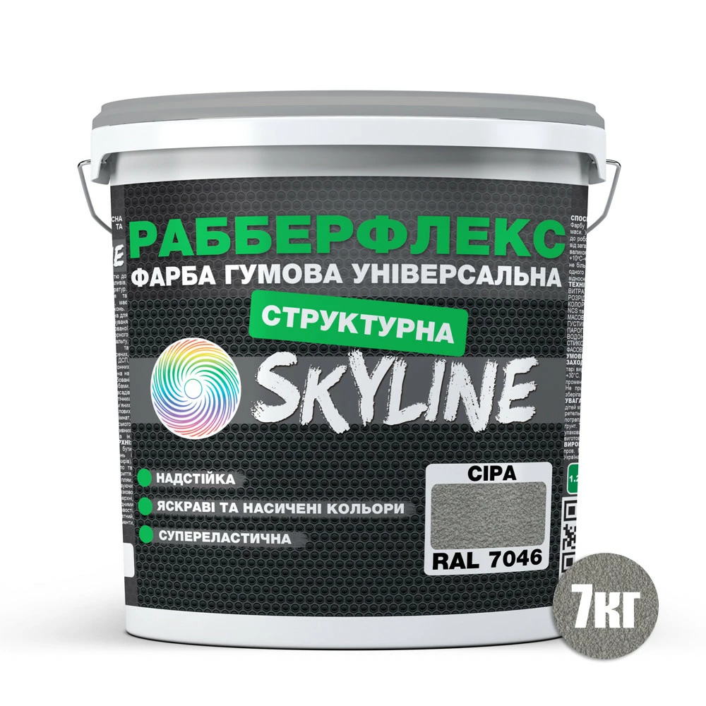 Краска резиновая структурная «РабберФлекс» SkyLine Серая RAL 7046 7 кг