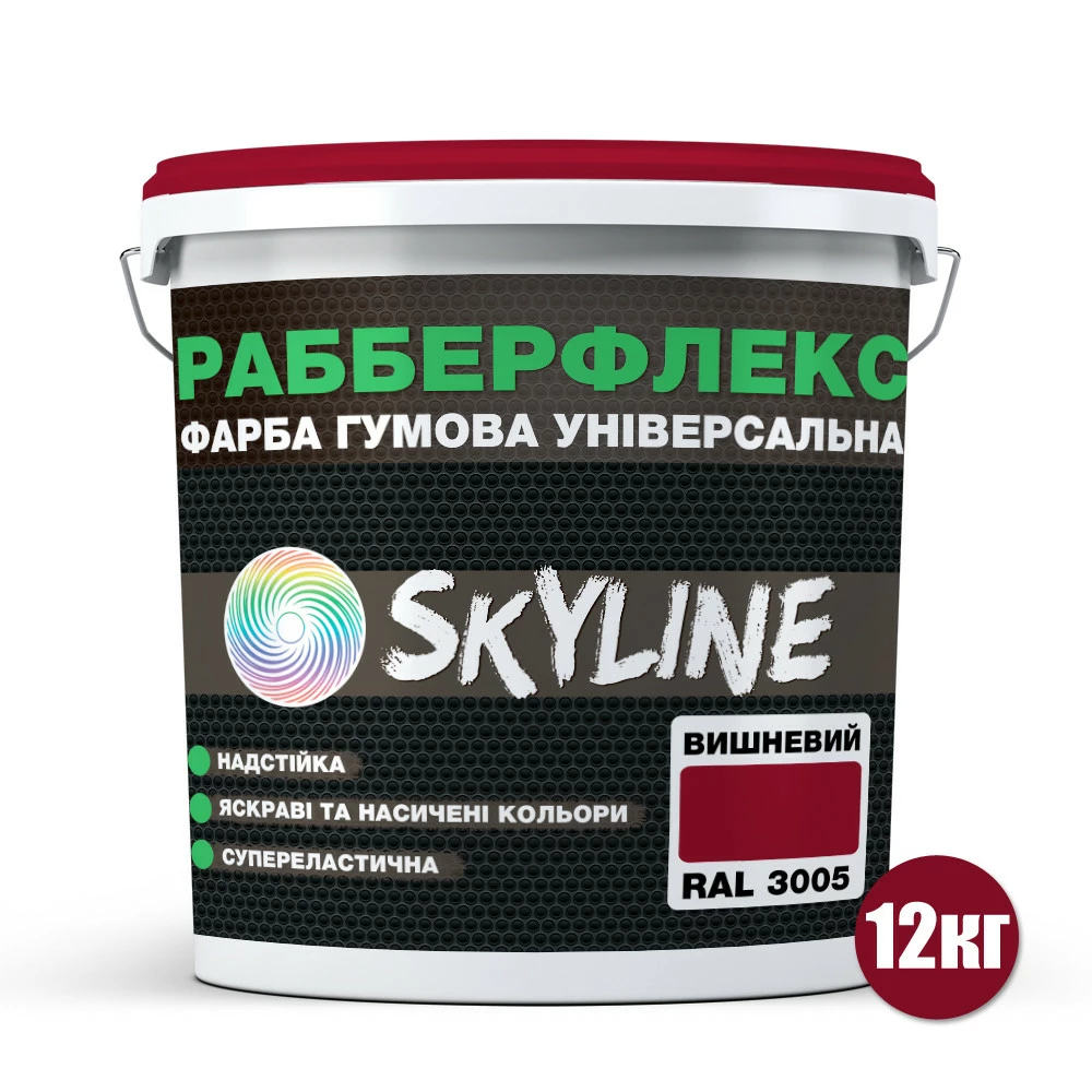 Краска резиновая суперэластичная сверхстойкая «РабберФлекс» SkyLine Вишневый RAL 3005 12 кг