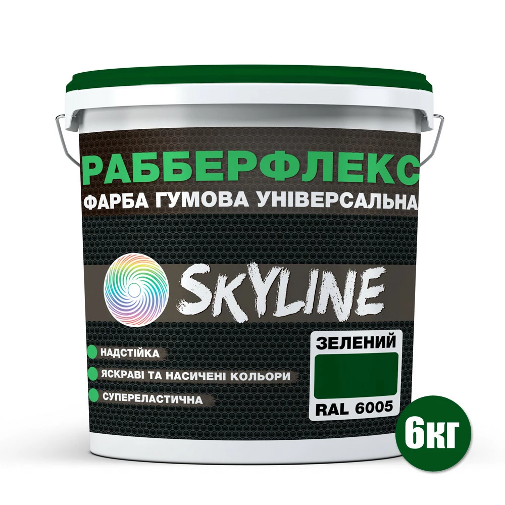 Краска резиновая суперэластичная сверхстойкая «РабберФлекс» SkyLine Зеленый RAL 6005 6 кг