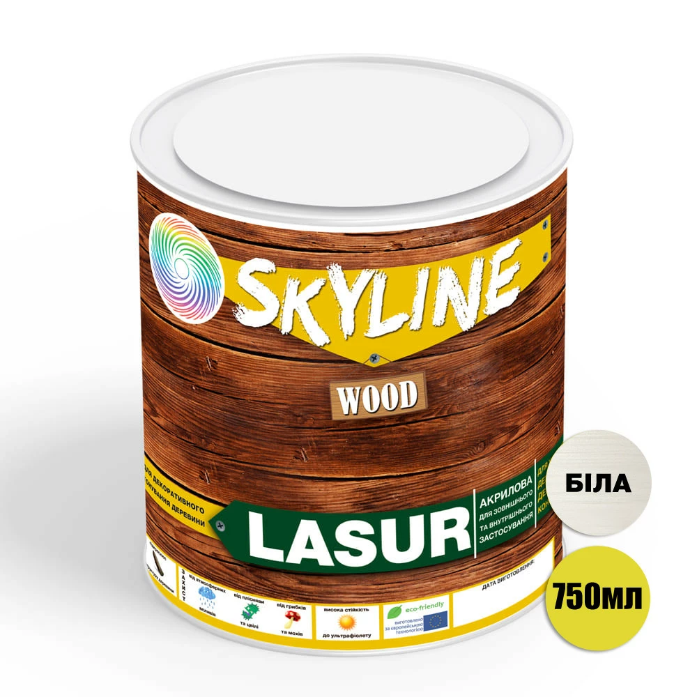 Лазурь декоративно-защитная для обработки дерева LASUR Wood SkyLine Белая 0.75 л