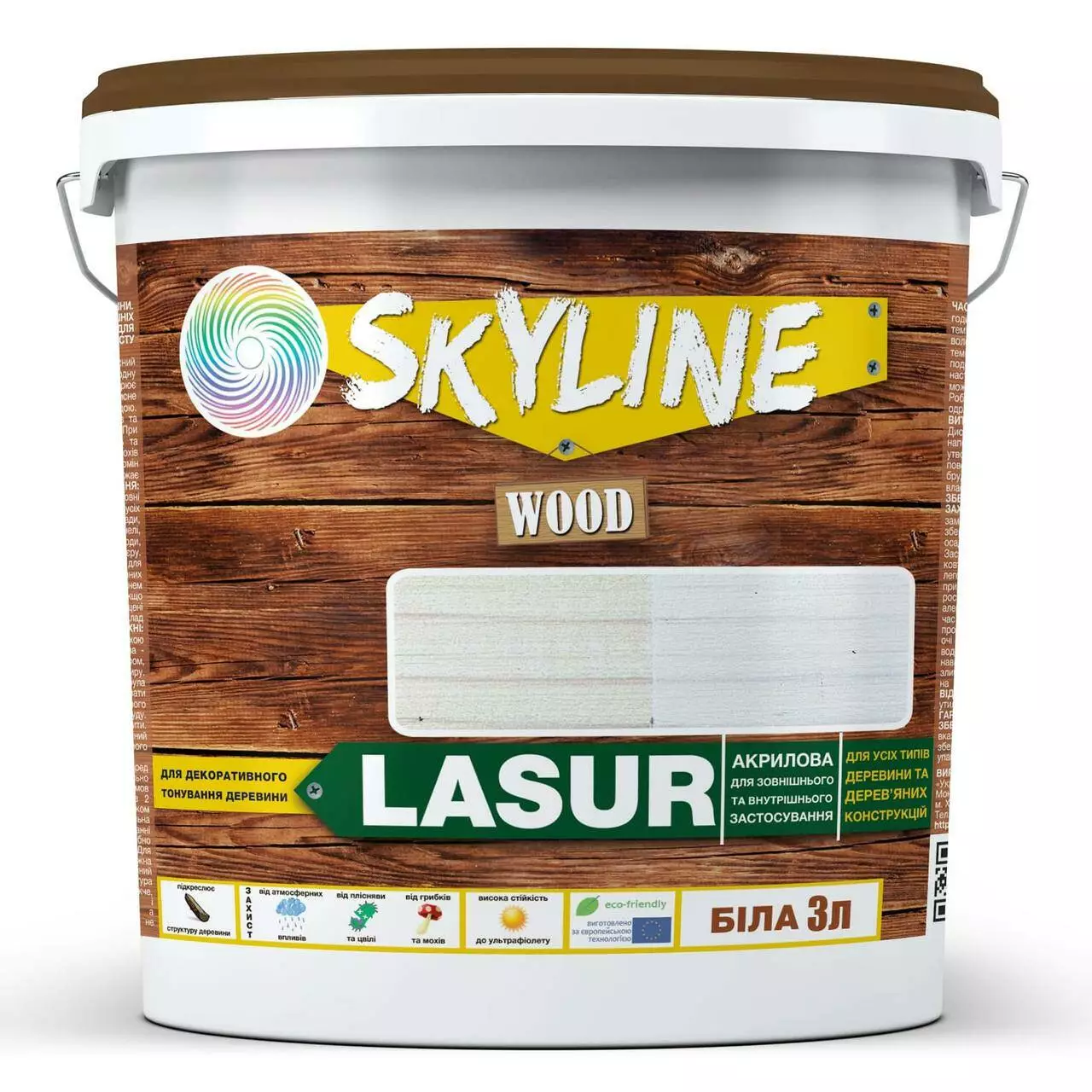 Лазурь декоративно-защитная для обработки дерева LASUR Wood SkyLine Белая 3л