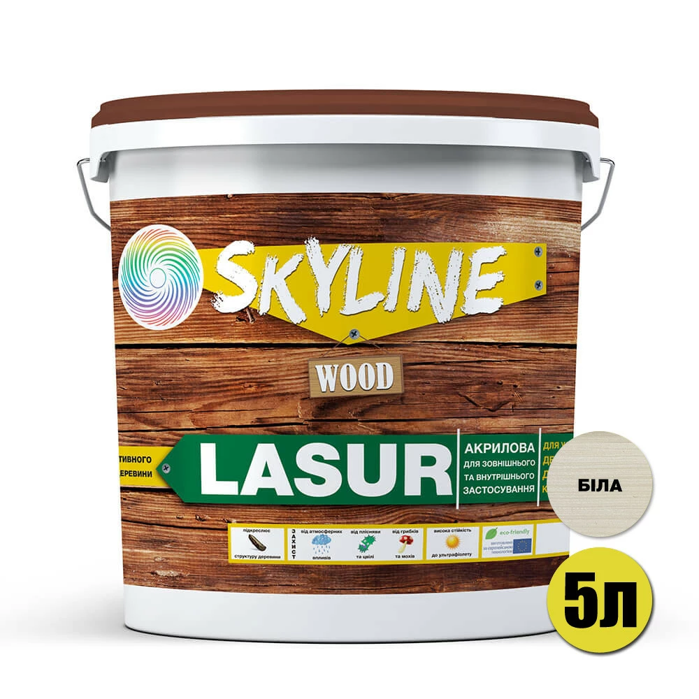 Лазурь декоративно-защитная для обработки дерева LASUR Wood SkyLine Белая 5л