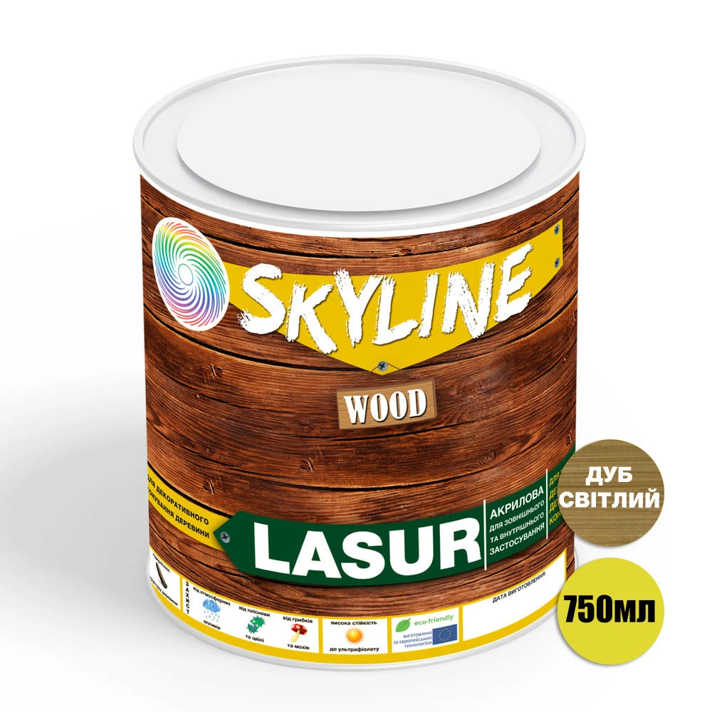 Лазурь декоративно-защитная для обработки дерева LASUR Wood SkyLine Дуб светлый 0.75 л