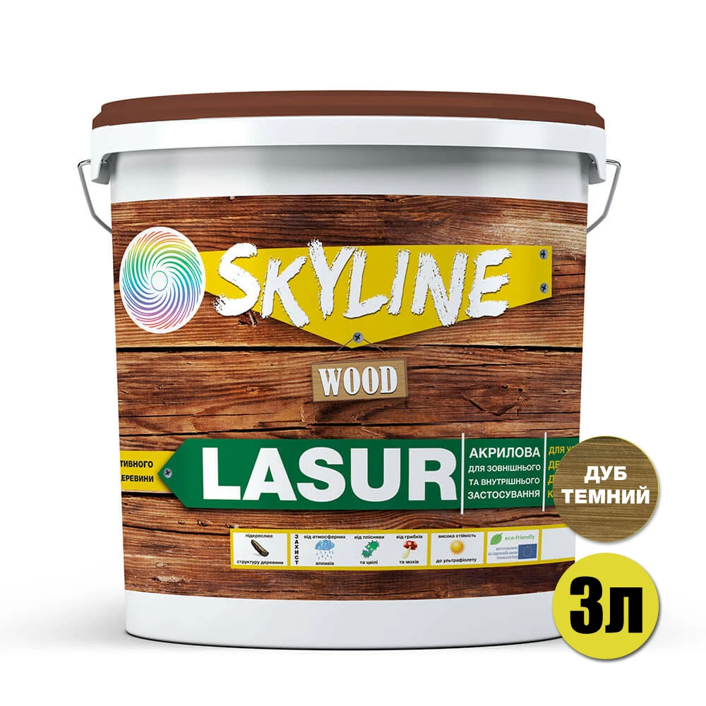 Лазурь декоративно-защитная для обработки дерева LASUR Wood SkyLine Дуб темный 3л