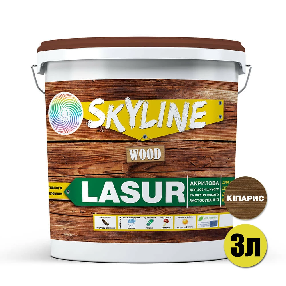 Лазурь декоративно-защитная для обработки дерева LASUR Wood SkyLine Кипарис 3л