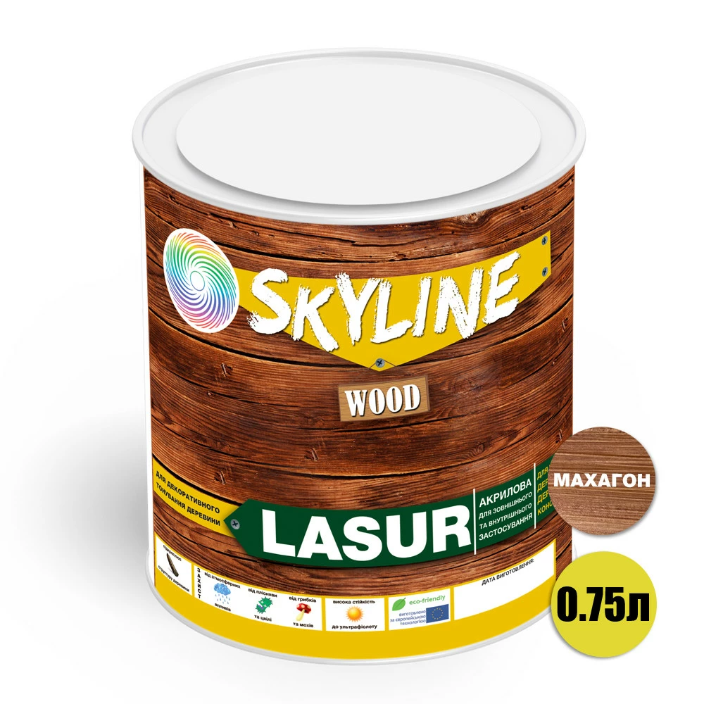 Лазурь декоративно-защитная для обработки дерева LASUR Wood SkyLine Махагон 0.75 л