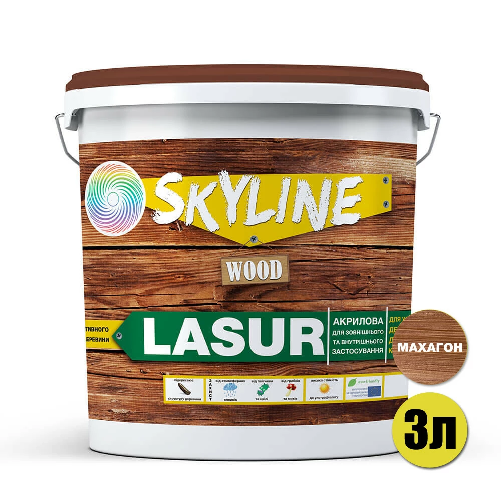 Лазурь декоративно-защитная для обработки дерева LASUR Wood SkyLine Махагон 3л