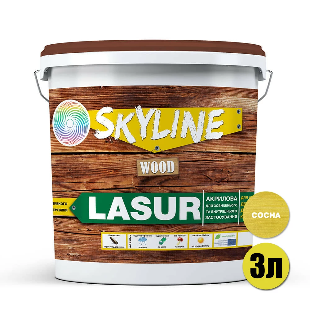 Лазурь декоративно-защитная для обработки дерева LASUR Wood SkyLine Сосна 3л