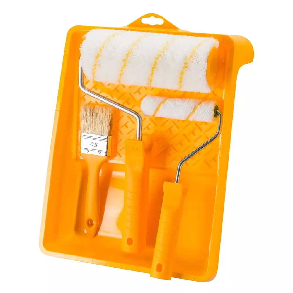 Простой и функциональный малярный набор используется для нанесения лакокрасочных смесей. Имея краску и данный набор вы можете сразу приступать к работе. Качественный инструмент — залог успешного завершения ремонта. Если не желаете тратить лишние время и силы на хождение по разным отделам магазина, закажите готовый к работе набор онлайн.
