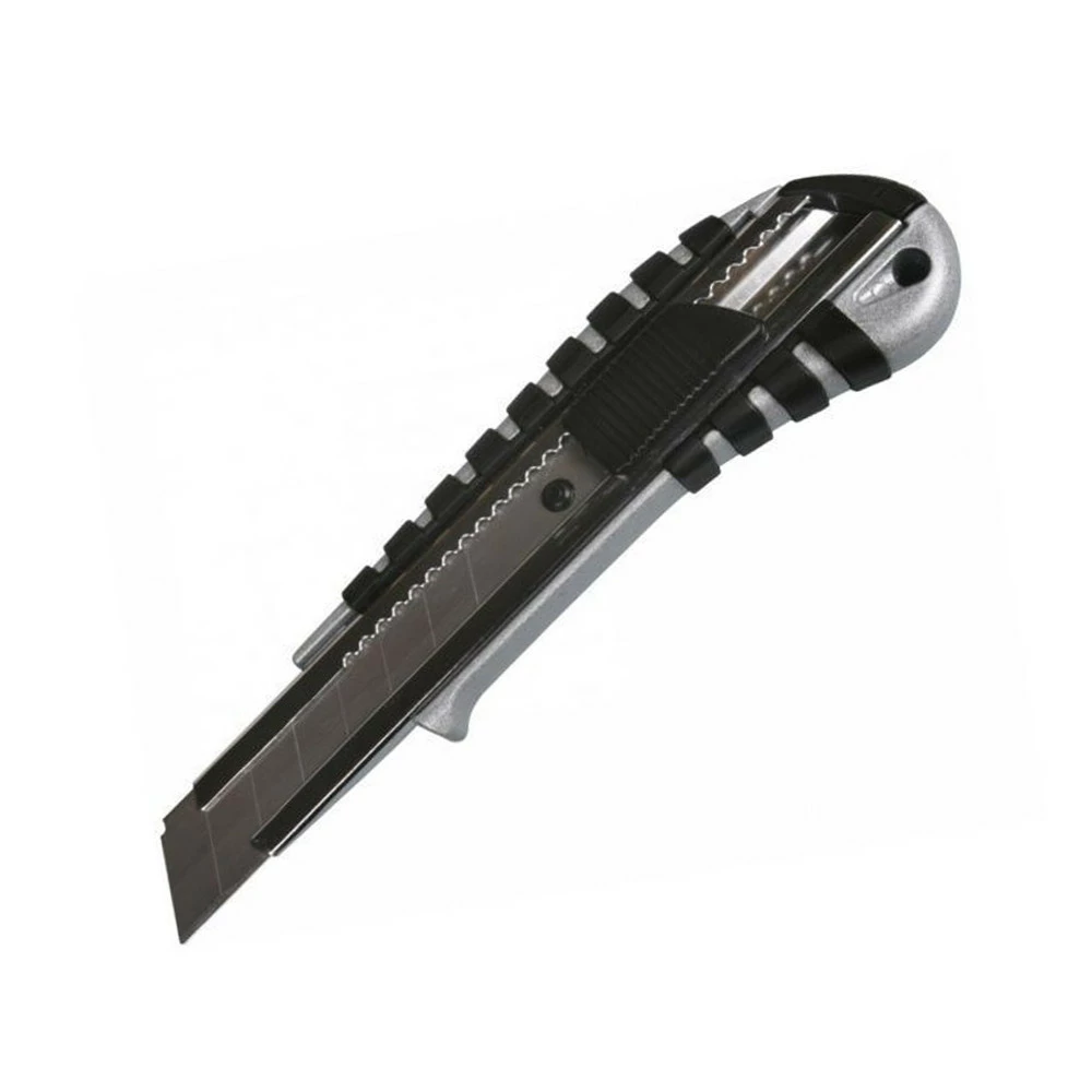 Имеет металлическую направляющую, что позволяет не прикладывать дополнительные нагрузки и увеличить срок его службы. Нож не нуждаются в заточке, затупившийся сегмент лезвия легко отламывается. Наличие зажима надежно фиксирует лезвие и не дает ему сместиться внутри корпуса. Можно установить любую длину и заменить лезвия в случае необходимости. Нож оснащен прямым выдвижным лезвием, сегменты которого легко отламываются плоскогубцами или специальным приспособлением по мере необходимости. Сменные лезвия продаются отдельно. На рукоятке предусмотрено отверстие для подвешивания ножа при его хранении. Удобная форма рукояти способствует надежному удержанию инструмента без проскальзывания.