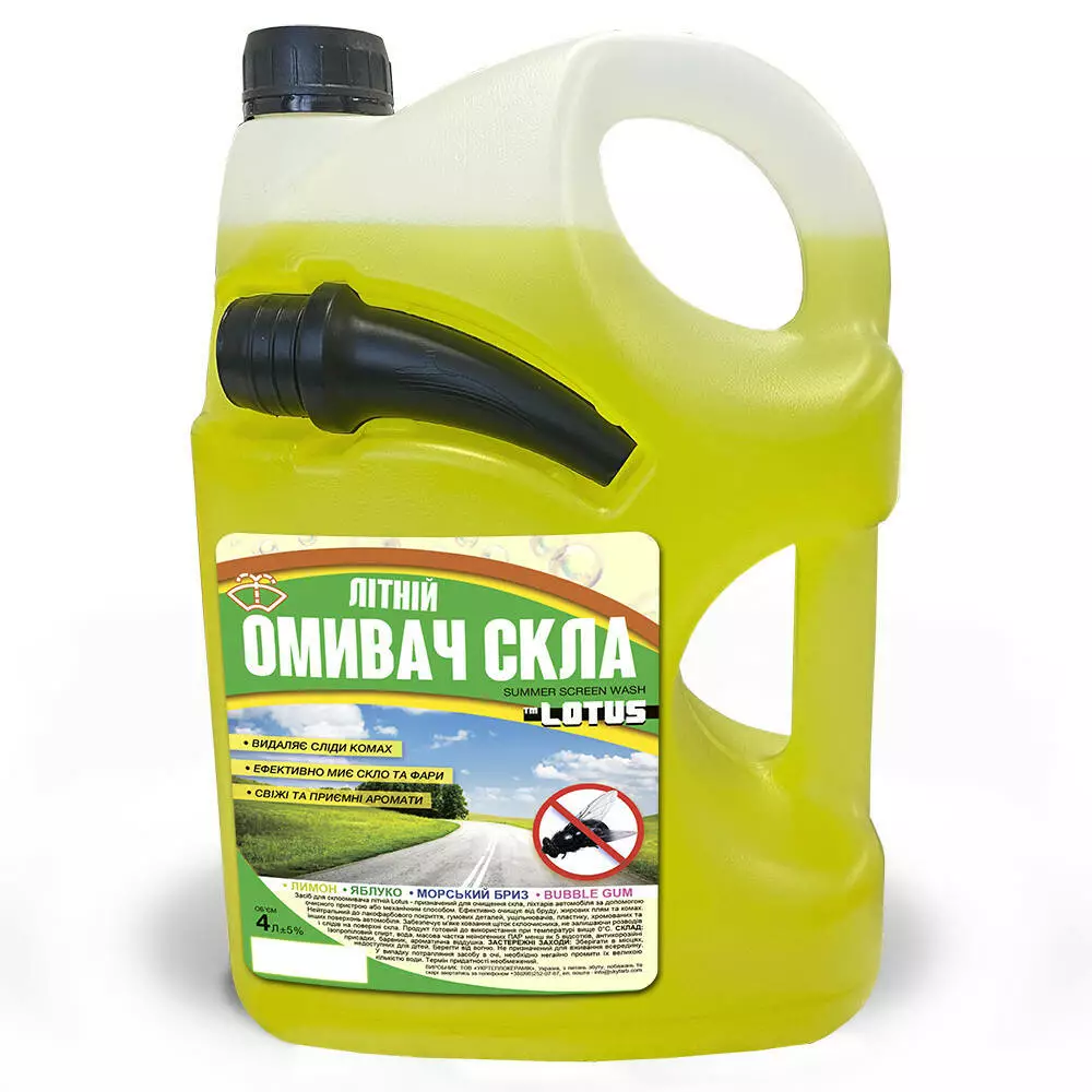 Жидкость омывателя стекла и фар с тщательным очищающим эффектом, предназначенная для использования в теплое время года. Удобная тара с насадкой-носиком позволяет быстро и легко заполнить емкость омывателя, минимизируя при этом потери. Летний омыватель Лотус обеспечивает быстрое и качественное удаление загрязнений, включая следы от мошек, клей деревьев, битум, налет от дорожных реагентов и многое другое. Остатки средства самостоятельно испаряются со стекла, не оставляя подтеков, полос или радужных разводов, для максимальной прозрачности лобового стекла и комфортного обзора в любое время суток. Обладает специальными отдушками, которые придают жидкости приятный аромат "Яблоко". Не содержит в составе метиловый спирт и является безопасным для здоровья человека и окружающей среды. Жидкость полностью готова для использования и не нуждается в предварительном разбавлении водой.