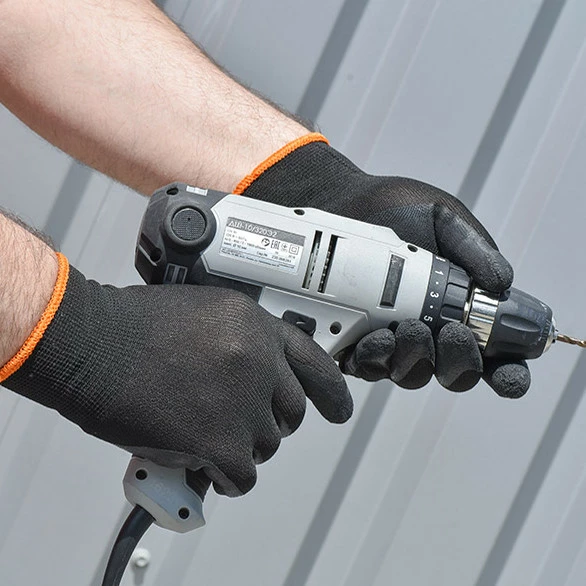 Основной материал для перчаток – прочный трикотаж, который приятный по тактильным ощущениям, не снижает чувствительность руки, в прохладное время сохраняет тепло ладони. Неполный облив нанесен на внутреннюю часть пальцев и на пространство между ними, а также часть ладони. Слегка шершавая поверхность позволяет длительное время держать надежно в руке инструмент без выпадения, в том числе, с ровной и гладкой поверхностью. Используя перчатки, можно защитить ладонь от ссадин, сколов, царапин, контакта с влагой и другими химическими веществами, например, маслом, краской, лаком.