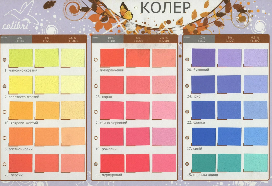 Универсальный пигмент концентрат «Colibri» (Колибри) сделан на основе высокодисперсного немецкого пигмента, хорошо сочетается с разными видами красок, легко перемешивается. Сделано в Украине- концентрат продукта в два-три раза выше, чем у польских и российских аналогов. Морозостойкий (температура хранения от -50 до +50ОС). 28 ярких и насыщенных цветов, удобное и привычное наполнение - 100 мл. Максимально светостойкие цвета. Срок годности - 36 месяцев.